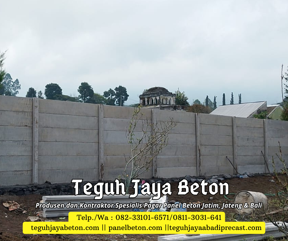 Sebagai produsen dan kontraktor pagar panel beton, Kami siap memenuhi kebutuhan pagar panel beton Anda. Dengan pengalaman yang terbilang cukup di bidangnya Teguh Jaya Beton siap melayani Anda dengan sepenuh hati. Jaminan kualitas produk dan pelayanan yang prima menjadi motivasi andalan dari Teguh Jaya Beton. Teguh Jaya Beton melayani jasa penjualan dan pemasangan Pagar panel beton untuk area Jawa Timur, Jawa Tengah dan Bali. Jangan ragu lagi segera order produk di Kami….