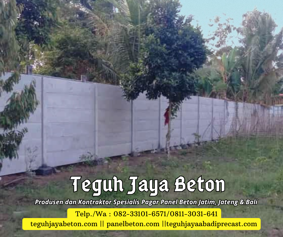 Sebagai produsen dan kontraktor pagar panel beton, Kami siap memenuhi kebutuhan pagar panel beton Anda. Dengan pengalaman yang terbilang cukup di bidangnya Teguh Jaya Beton siap melayani Anda dengan sepenuh hati. Jaminan kualitas produk dan pelayanan yang prima menjadi motivasi andalan dari Teguh Jaya Beton. Teguh Jaya Beton melayani jasa penjualan dan pemasangan Pagar panel beton untuk area Jawa Timur, Jawa Tengah dan Bali. Jangan ragu lagi segera order produk di Kami….